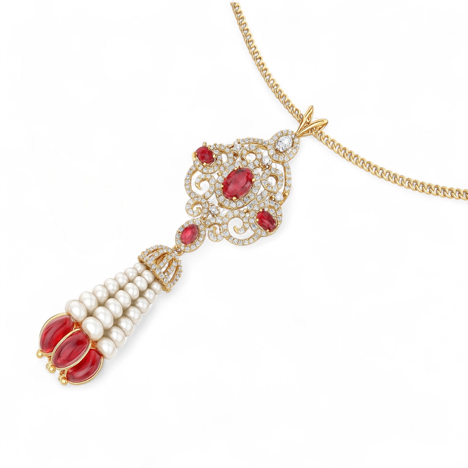 Antique Ruby and Pearl Diamond Pendant with Chain
