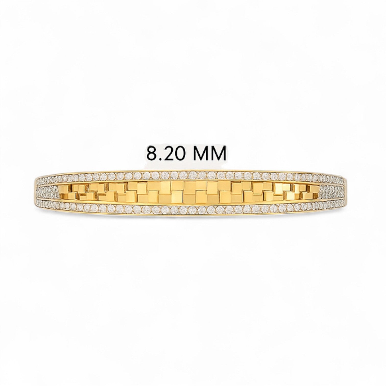 Featuring a striking geometric design framed with diamonds, this bangle stands out with its bold character. Available in 9k, 14k, 18k gold, and silver, it is a versatile piece that combines modern artistry with timeless sparkle. Its structured design is perfect for adding depth to any jewelry stack or making a solo statement. Ideal for fashion-forward jewelry lovers, this piece adds elegance and strength to every look. Fully customizable in metal, diamond, and finish options.