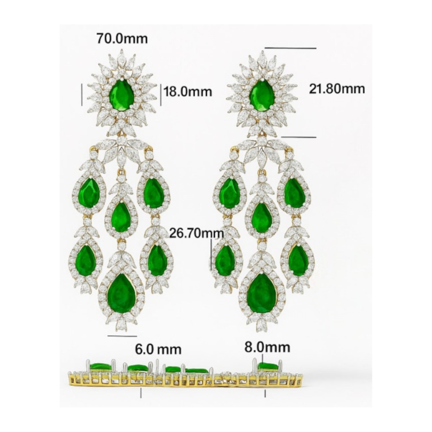 Designer Gold Emerald and Diamond Long Drop Earrings