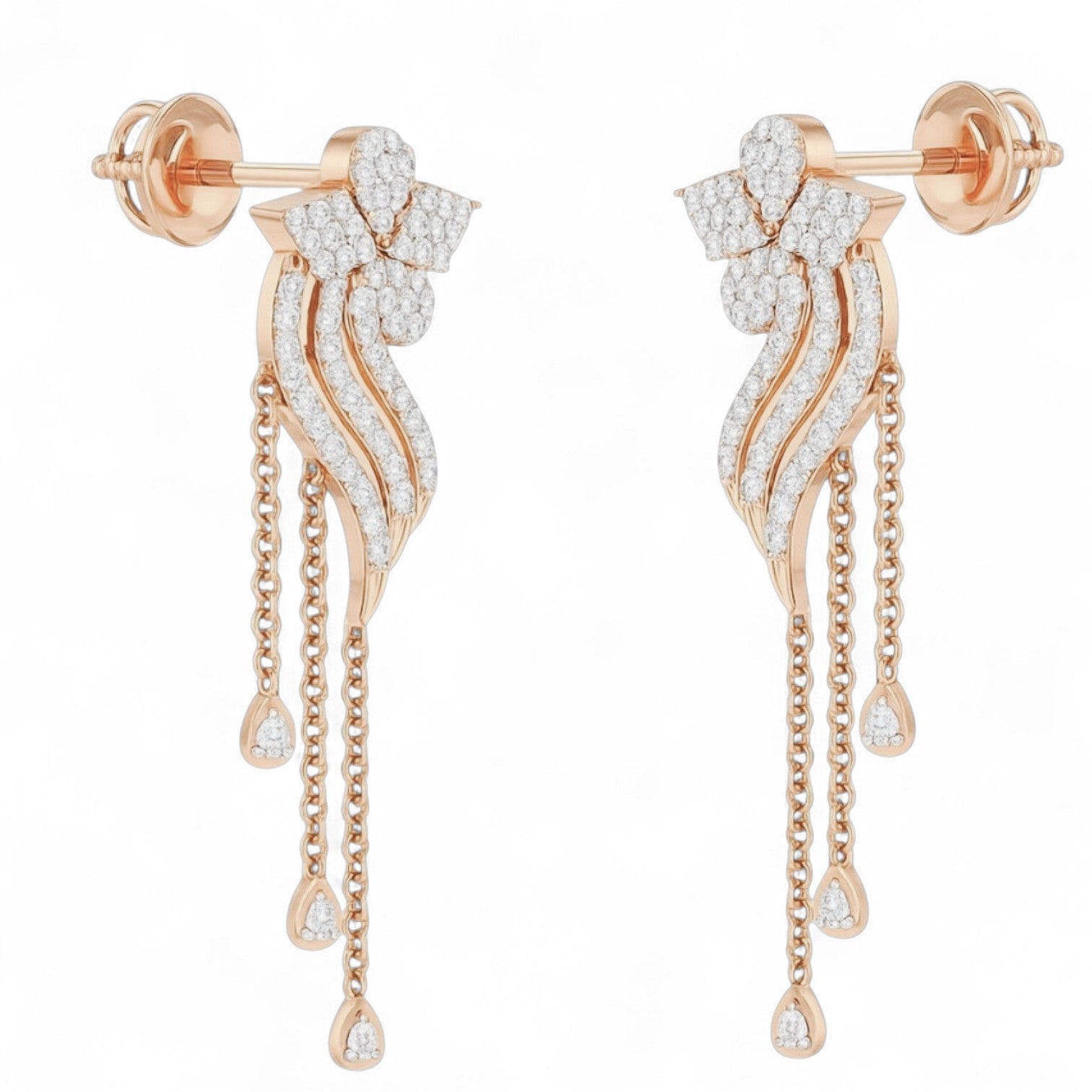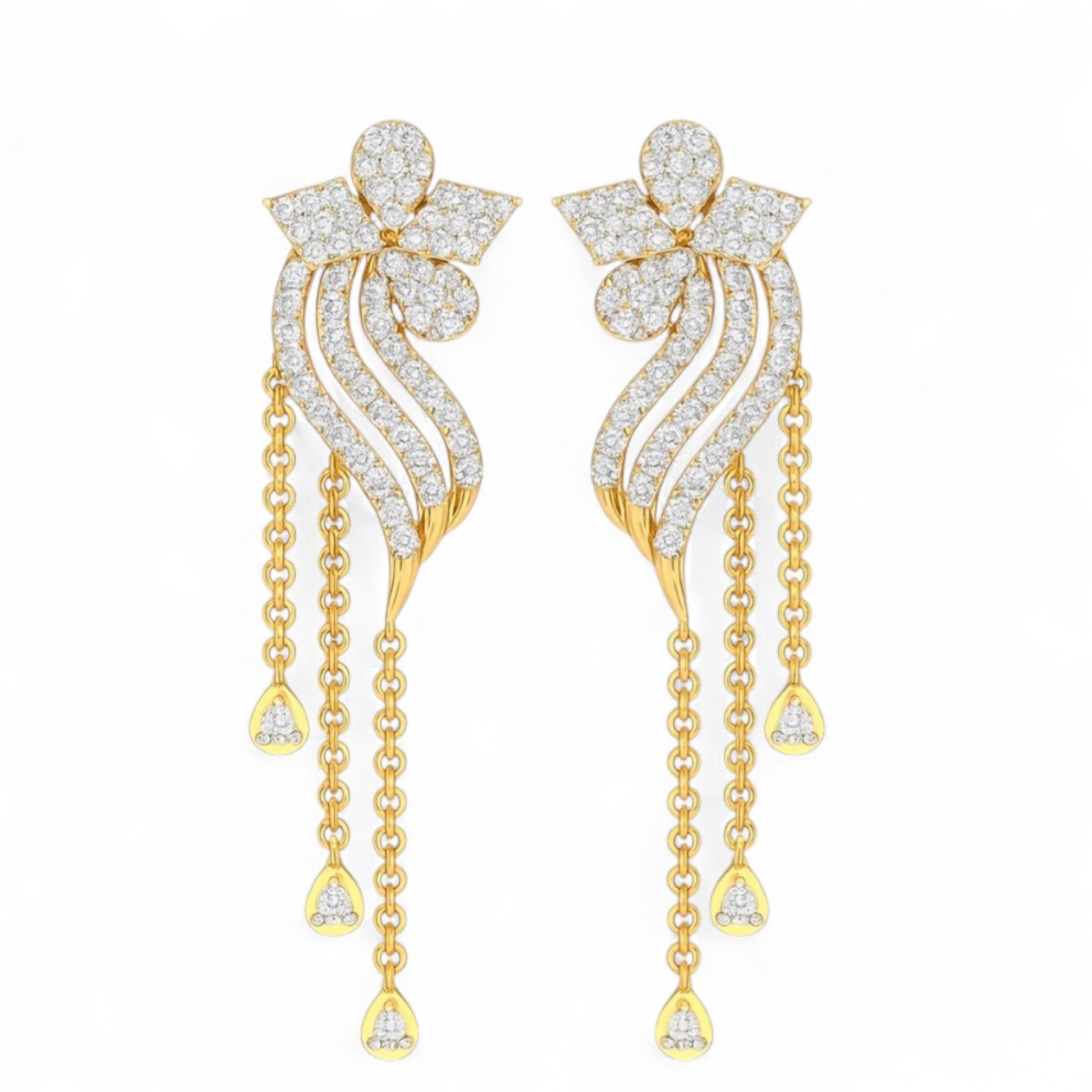 Golden Waves Diamond Drop Jhumka Earrings